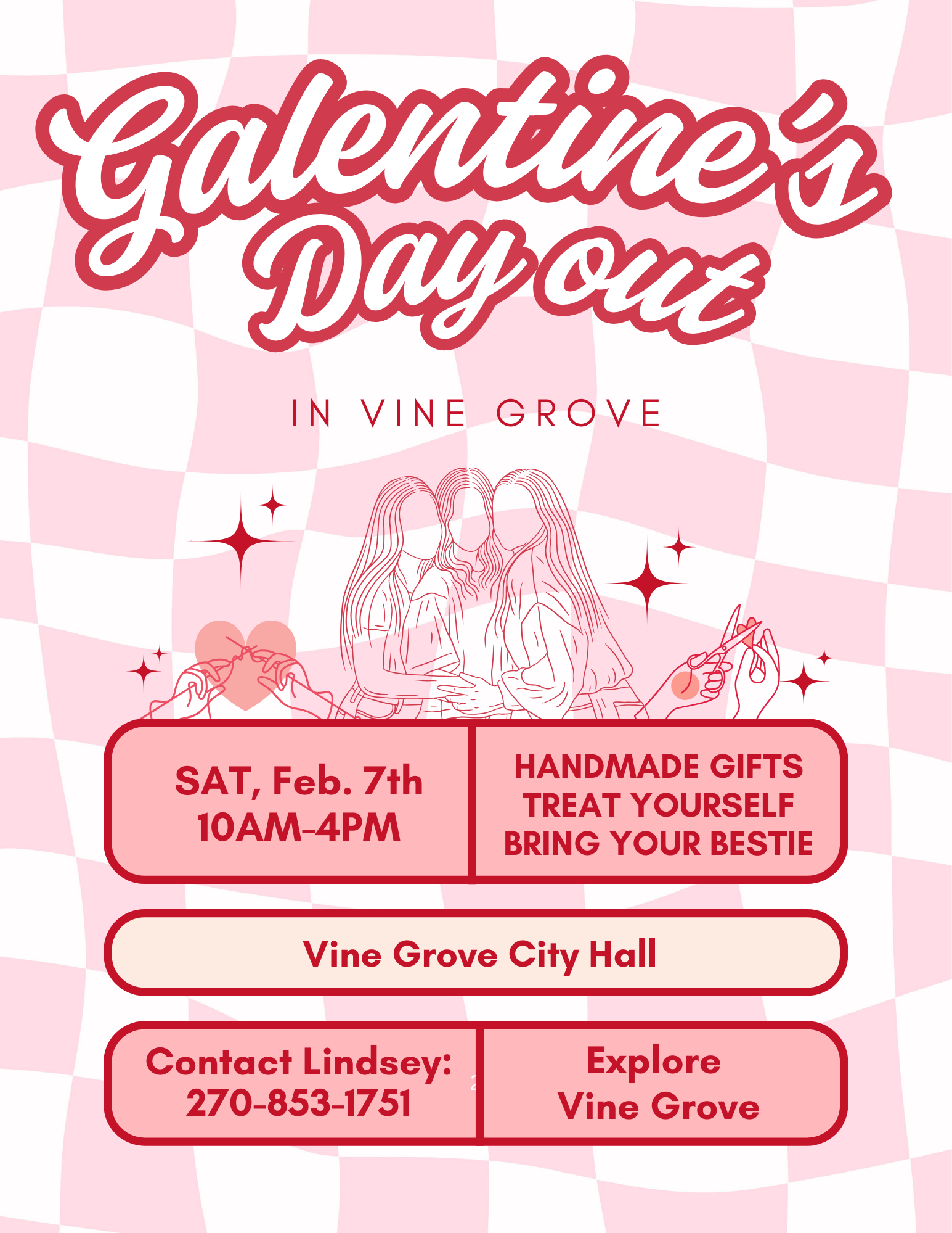 Galentine’s Day Out is an indoor, community-focused shopping and social event featuring 20+ local vendors, each offering a giveaway, with over $600 in total prizes up for grabs.